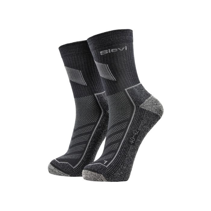 Ontwikkeld om vocht en warmte van het voetoppervlak af te voeren. Deze technische All Season sok is duurzaam, geschikt om het hele jaar te gebruiken en wordt aanbevolen voor gebruik in lage schoenen, boots en bijvoorbeeld GORE-TEX-schoenen. ESD-goedgekeurd. De merinowol is mulesing-vrij. Materialen: 48% polyamide, 34% merinowol, 14% polypropeen, 2% elastaan en 2% koolstofvezel. Machinewasbaar op 40°C, niet trommeldrogen.
