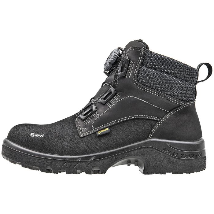 Sievi Spike® schoenen hebben een in de zoolstructuur geïntegreerd gepatenteerd noppenmechanisme. De noppen kunnen in en uit de zool worden gedraaid zonder de schoen uit te trekken. De noppen bieden stevige grip op ijs bedekt met sneeuw of water; de ideale veiligheidsschoen voor winterse omstandigheden. Met een waterdicht en ademend GORE-TEX membraan en BOA® Fit System vetermechanisme.